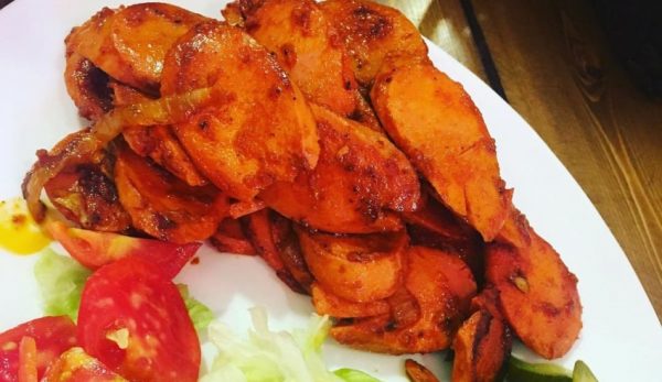 150 گرم سوسیس بندری- 1 عدد فیله مرغ گریل شده-سیب زمینی- کاهو- گوجه-خیارشور