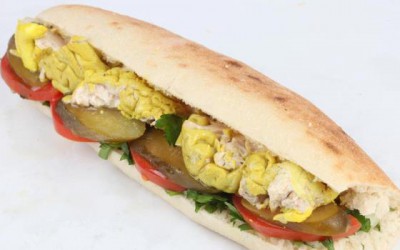 120 گرم مغز گوساله طعم دارشده- کاهو- گوجه-خیارشور-سس مخصوص