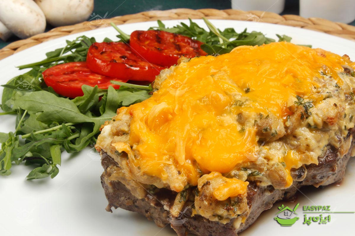 گوشت چرخکرده-قارچ- پنیر