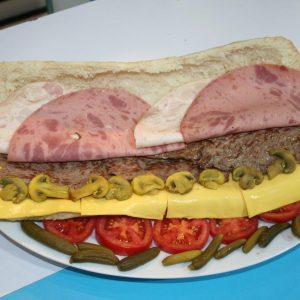150 گرم سوسیس بندری- قارچ -کاهو- گوجه-خیارشور