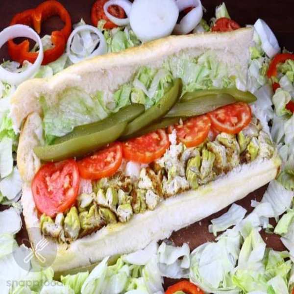 ژامبون مرغ- قارچ- پنیر- کاهو- گوجه- خیارشور-سس مخصوص