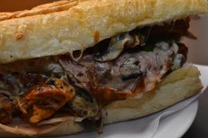 ژامبون گوشت-قارچ- پنیر- کاهو- گوجه- خیارشور-سس مخصوص