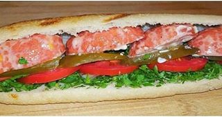 150 گرم سوسیس بندری- کاهو- گوجه-خیارشور
