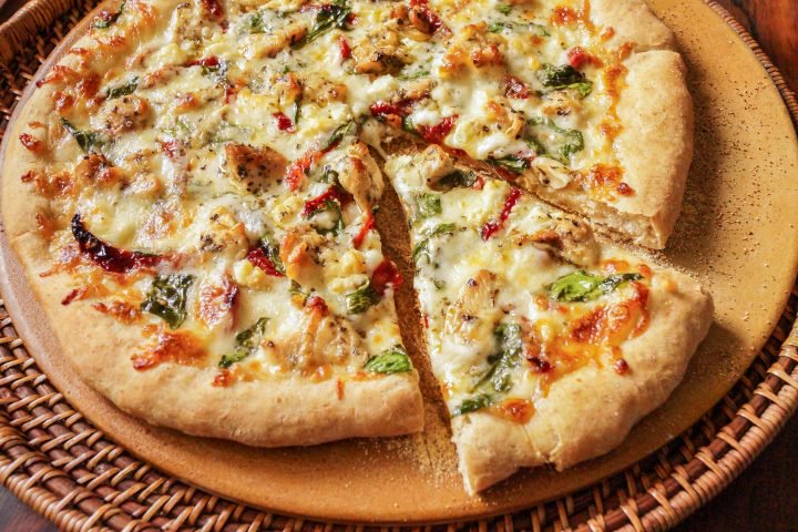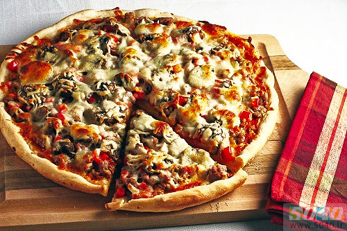کالباس خشک-ژامبون مرغ-قارچ- فلفل دلمه-خمیر مخصوص دو لایه یونانی-پنیر
