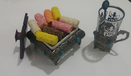 مواد داخل ساق عروس : پودر قند - پودر بادام - هل - گلاب - شربت بار